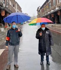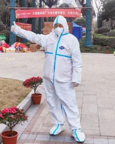 男,1979年出生,金桥股份经济合作社董事。1月29日根据要求,对第四年区块进行硬核隔离。接到通知,陈红峰立即组织区块内党员、股民代表、志愿者就地取材,冒着雨雪连夜完成区块的隔离措施。随后,他立马组织人员到岗到位,设置卡口,实行24小时值班值守。由于长时间爬楼、站岗和超强度的工作,导致多年前的腿部顽疾复发,右膝以下全部肿胀,只能绑着绷带,拄着拐杖站立。为了早日赢取战“疫”胜利,陈红峰仍继续坚守在岗位上。