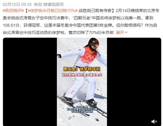 今年,是徐梦桃的第四次出征冬奥会,热爱和坚持,终于让她如愿以偿拿到了自由式滑雪空中技巧项目的金牌,实现了大满贯。各种祝贺和报道中,我们可以看到她为此也付出了很大的牺牲,不但身体伤痕累累,半月板也已经切除了70%。