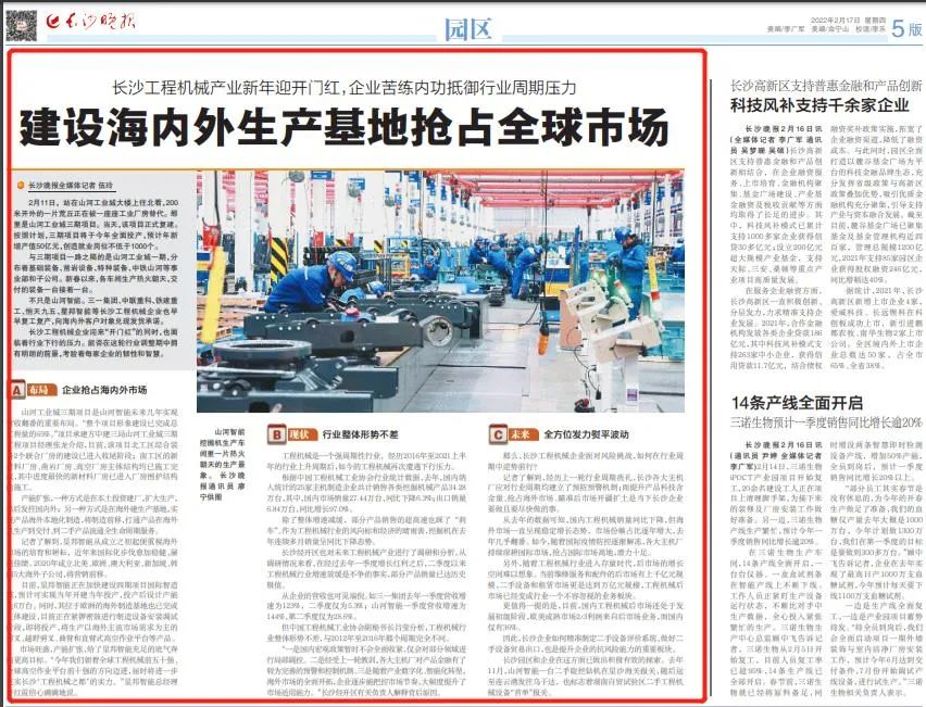 这一派新年开端的忙碌景象,被记者记录在了文字报道里。2月17日,长沙晚报发表文章,讲述长沙工程机械产业新年迎来了开门红!(查看详情请点击文末阅读原文)