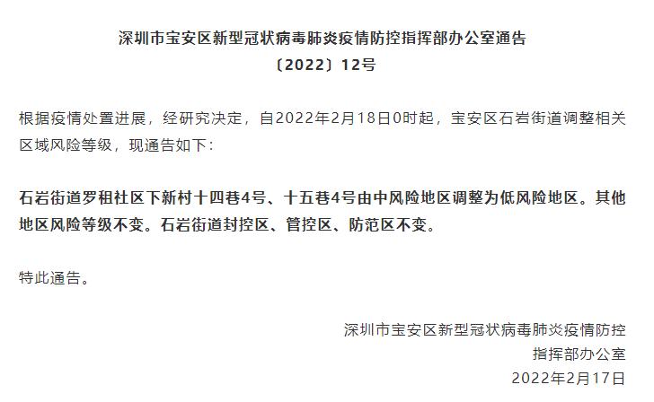 原标题:《深新早点 | 宝安石岩街道这些区域调整风险等级》