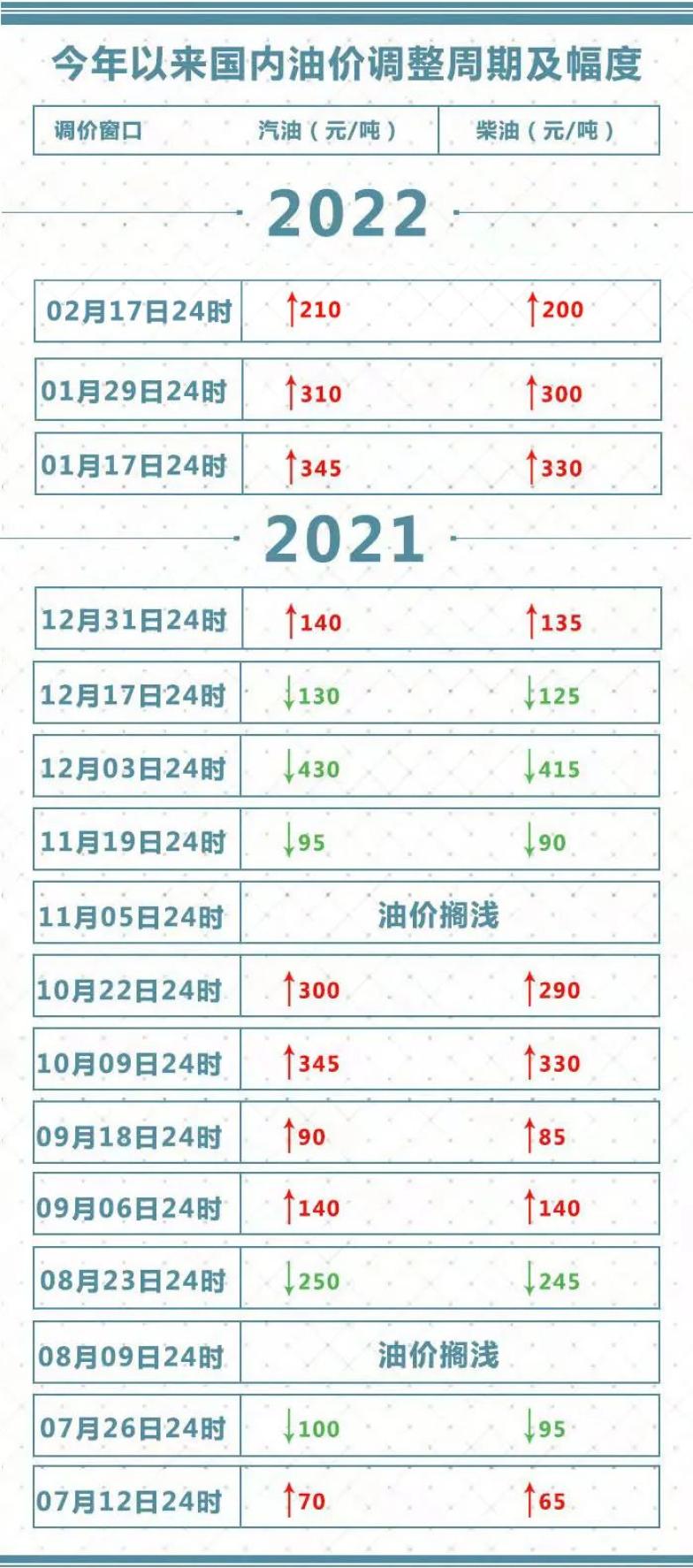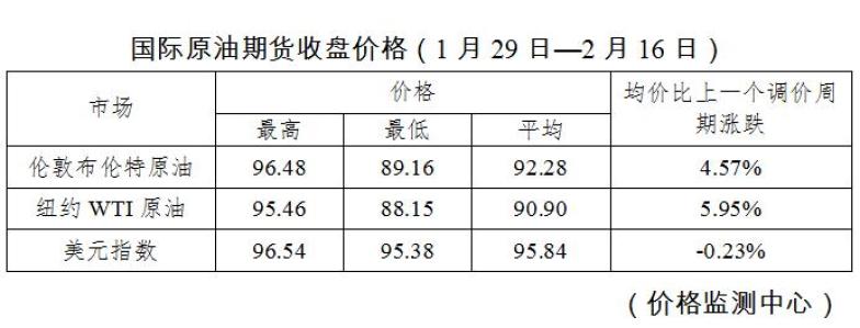 此外,美国部分地区遇极寒天气、原油库存下降等因素也助推了油价涨势。平均来看,本轮调价周期伦敦布伦特、纽约WTI油价分别比上一调价周期上涨4.57%、5.95%。
