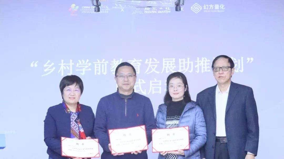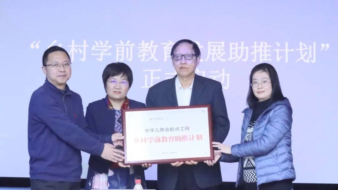 在大家的见证下,“乡村学前教育发展助推计划”正式揭牌,中华儿慈会理事长王林为三位专家颁发聘书。