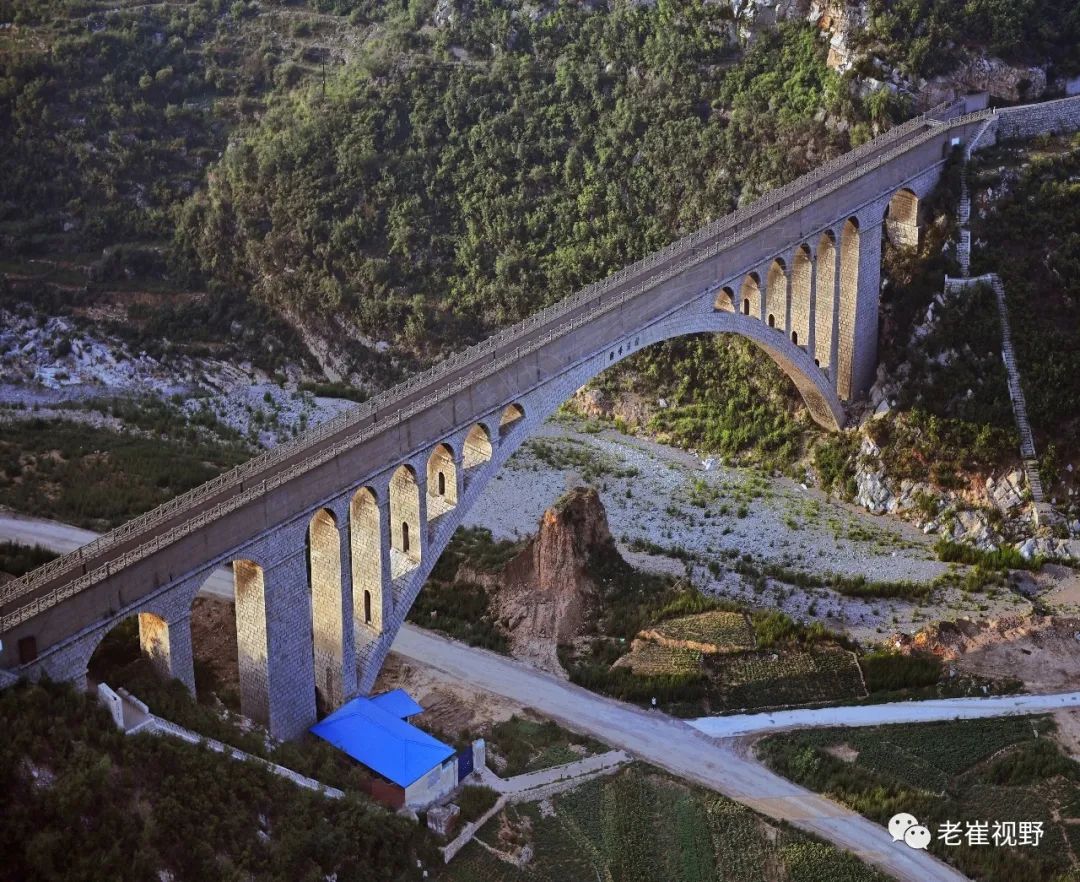 (横屏。险峰渡槽是当时华北地区跨度最大的砌石拱形渡槽,全长212米,主拱跨106米,拱高28.7米。摄影@邯郸老崔,2019.6.29)▼