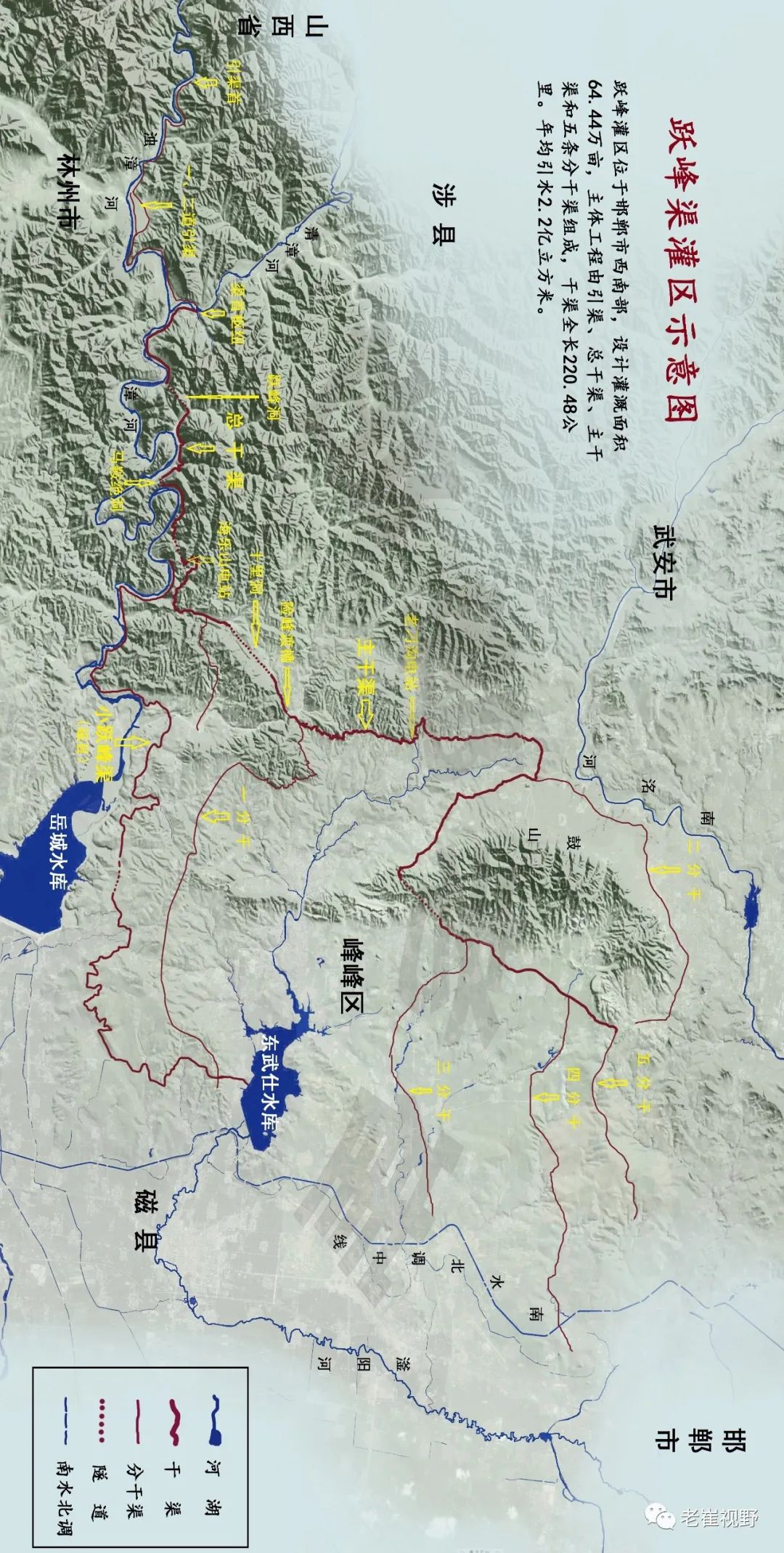 (横屏。跃峰渠灌区示意图。制图@邯郸老崔)▼