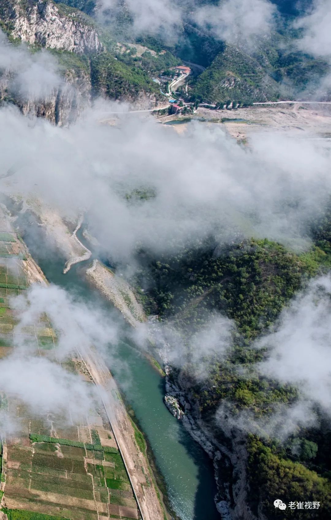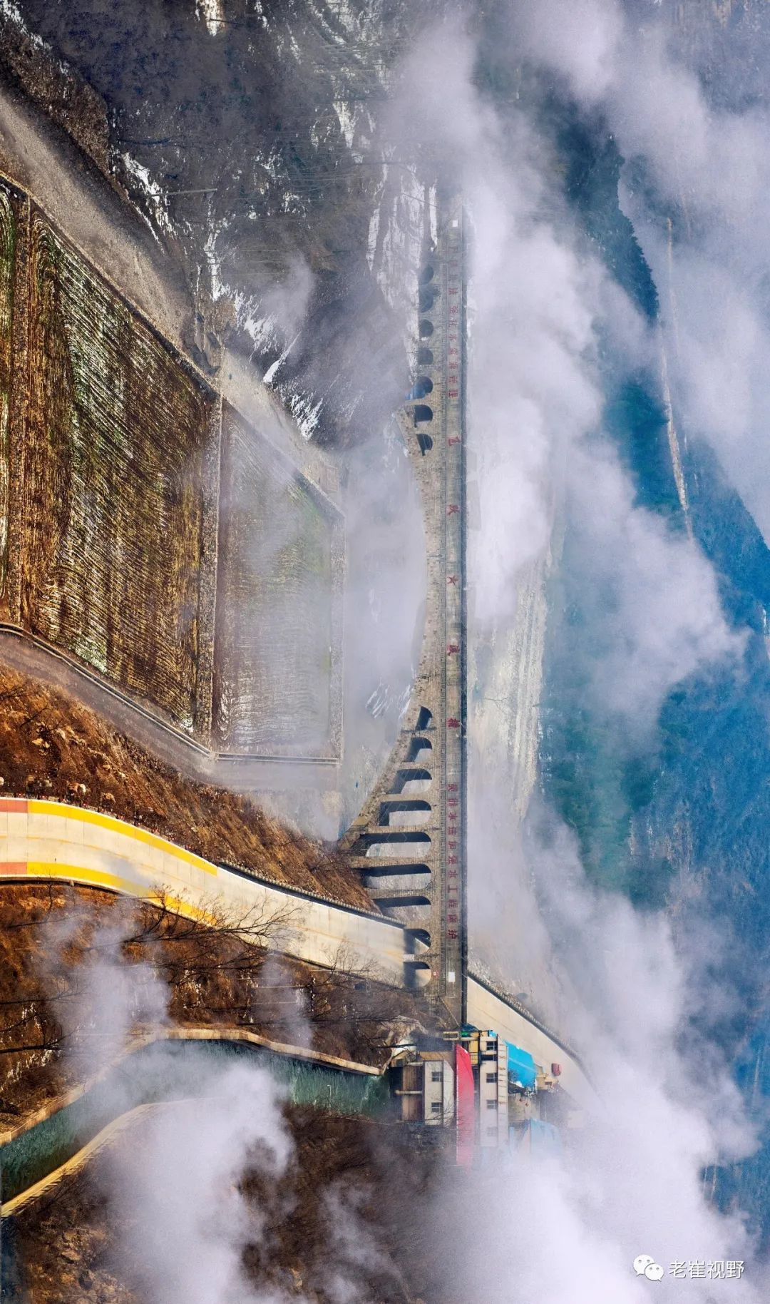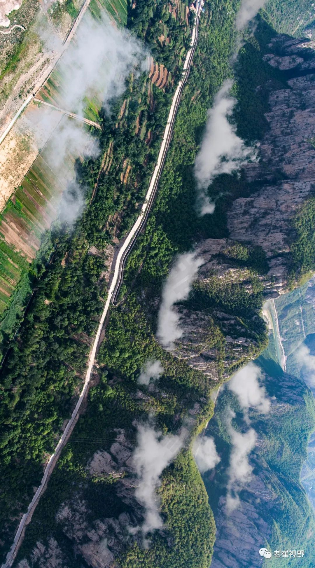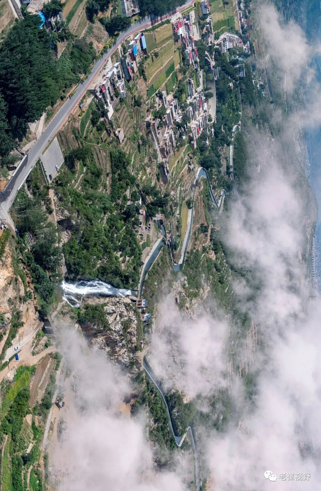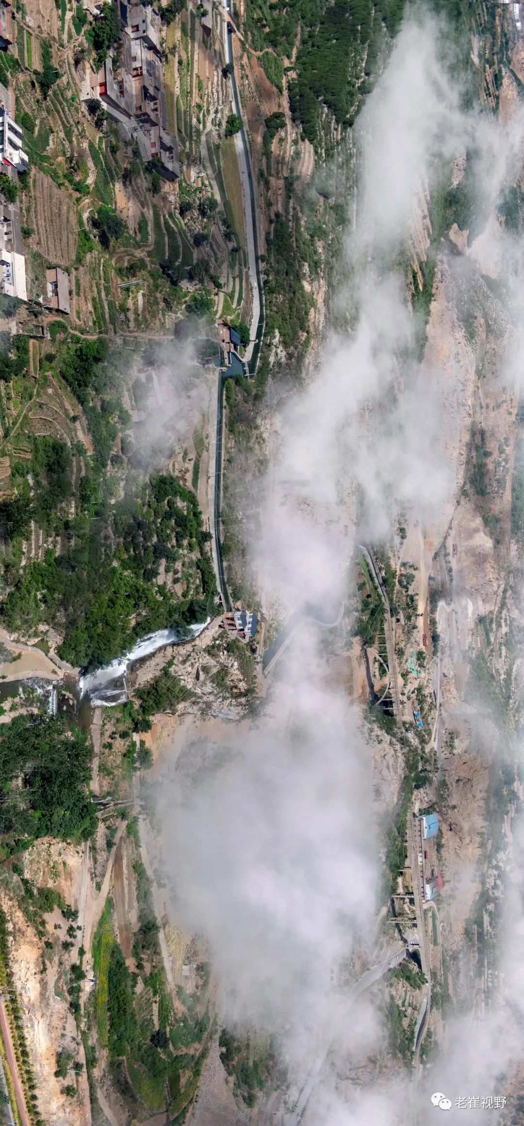 (横屏。团结渡槽和胜利渡槽。过了老刁沟电站,云雾中隐约可见两个相连的渡槽。团结渡槽长84米,胜利渡槽长125米。摄影@邯郸老崔,2019.6.29)▼