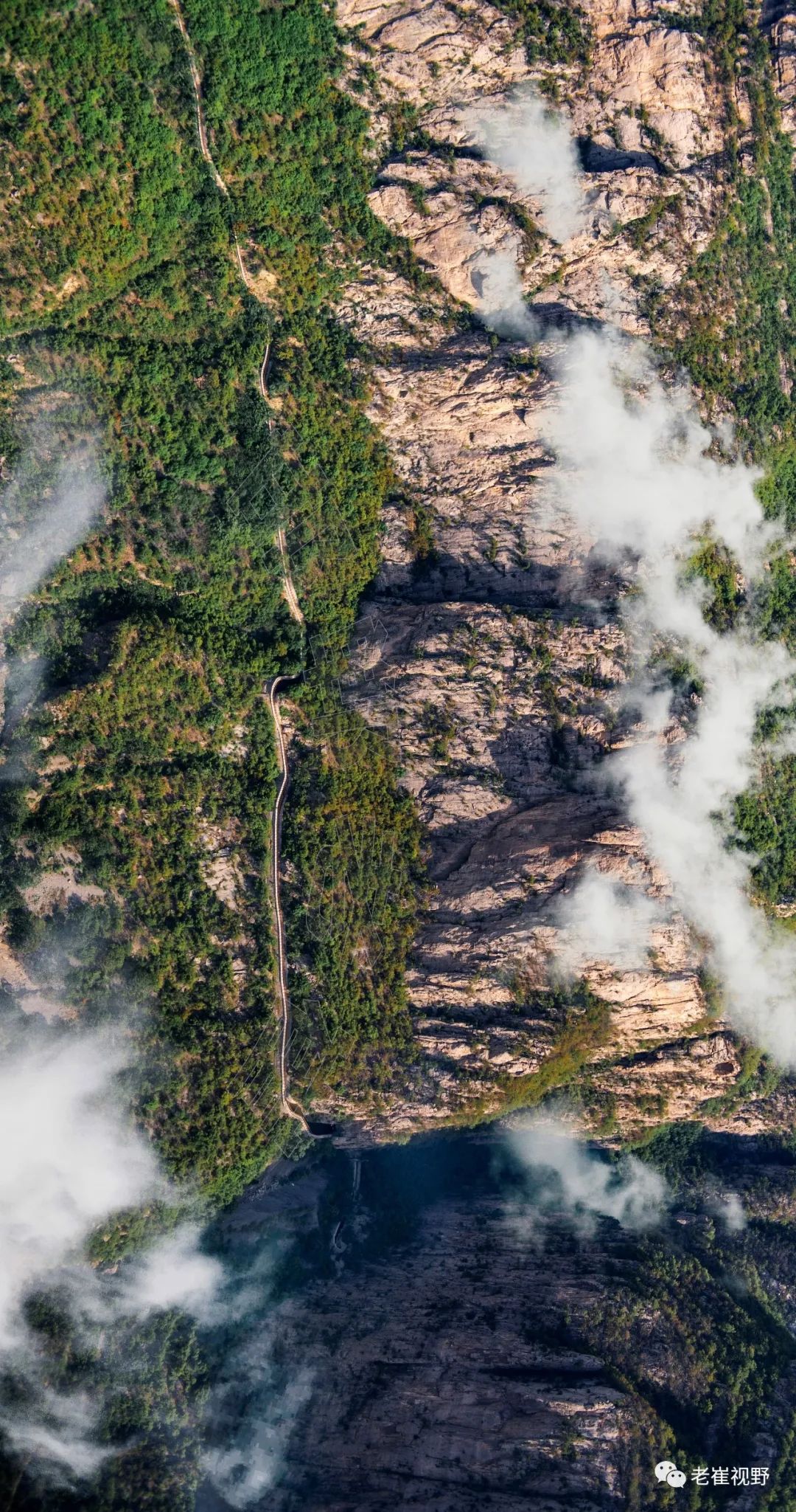 (横屏。穿越马鞍绝洞之后,渠段全都坐落在绝壁之上,是跃峰渠最壮观惊险的一段。摄影@邯郸老崔,2019.6.29)▼