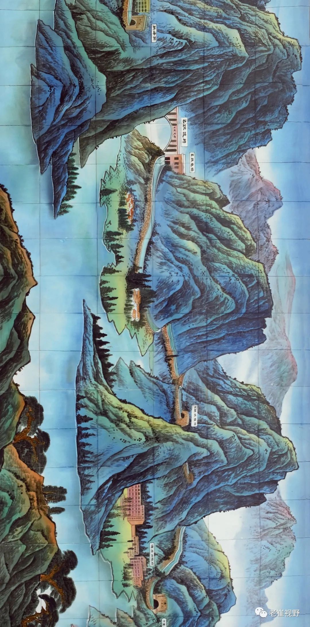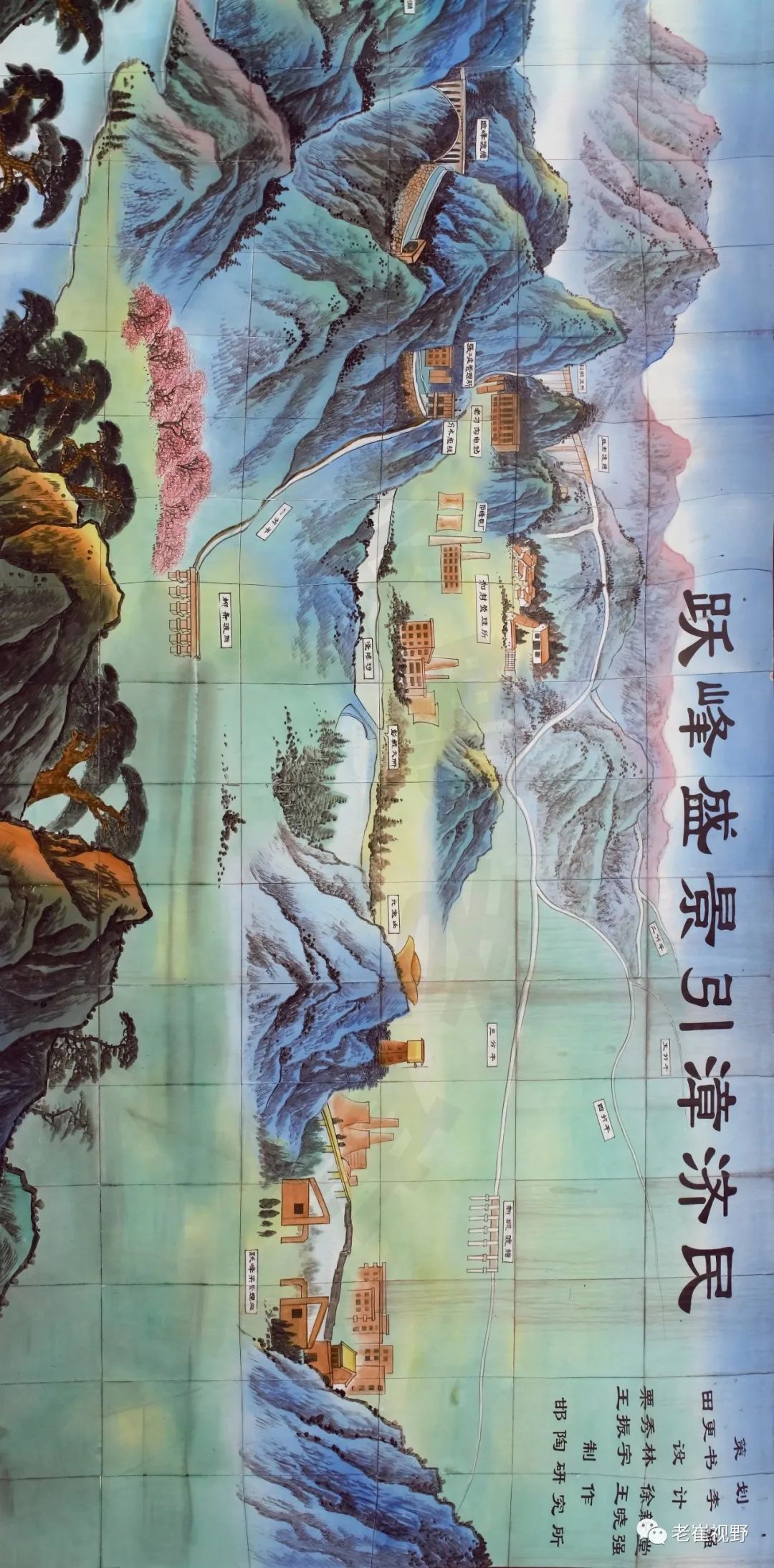(横屏。巨型陶瓷壁画“跃峰盛景引漳济民”,陈列在海乐山电站内。形象展现了跃峰渠全程的重要工程节点。摄影@邯郸老崔,2019.8.27)▼