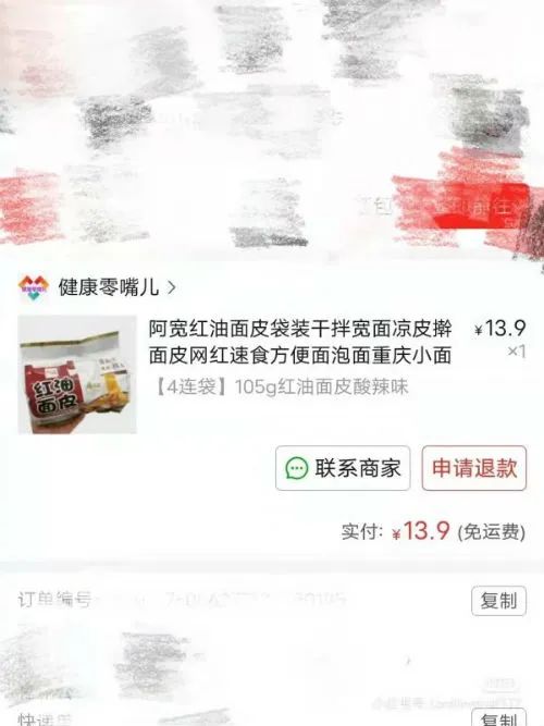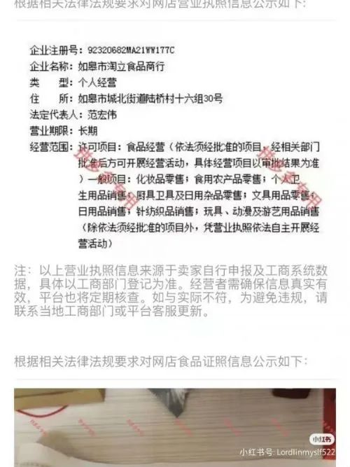 消费者发布的后续笔记中,披露了红油面皮的订单截图以及经营许可证截图,记者查询发现,这是一家拼多多平台上的店铺。记者向阿宽方面了解这家商户是否是经销商,阿宽方面表示,“非授权店铺,我们没有和他们的经销合同。”