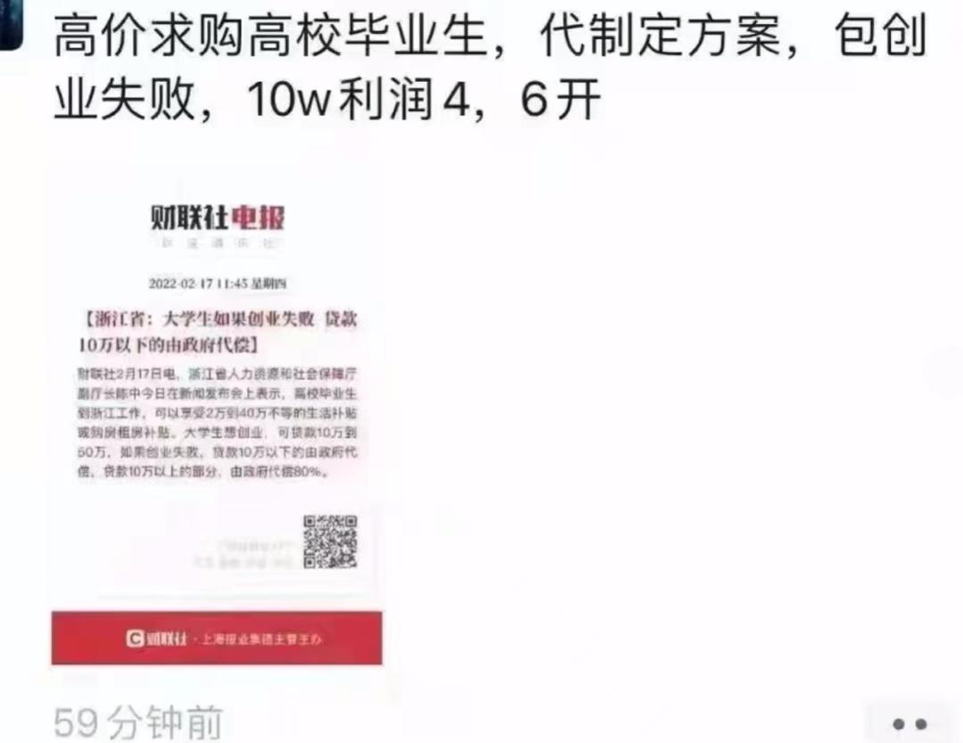 甚至,还有网友调侃,“高价收购毕业生,代制定方案,包创业失败……”薅羊毛的冲动呼之欲出。