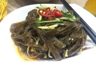 镇安黑米皮是商洛一带的名小吃,由唐代冷淘面演变而来,在白擀面皮的基础上进行改良加工而来。具有筋道、柔软、凉香、酸辣可口、四季皆宜之特点。黑擀面皮做法工艺复杂:经过洗面、发酵、烧制、压面、蒸煮、调味等多道工序而成;同时在炒制的过程中加入了黑芝麻粉,香味更浓,营养价值更高!黑擀面皮可以凉拌可以炒制,亦可和白擀面皮混搭口味更忒!