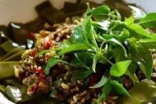 神仙叶凉粉又叫神仙豆腐,是秦岭大山里的山民于春天"发青"时节,从山上采集的"神仙叶子"制作而成的。传统做法是将鲜嫩的叶子用清水浸泡捞出,放到锅里加少许食用碱熬煮。过滤之后,形成粘稠的糊糊儿,然后凉冷凝固,再用清水漂一天左右,切成块或条放在碗里,浇上备好的调料汤即可食用,最好是大蒜辣子酸菜汤,吃起来清凉爽口,别有一番风味。