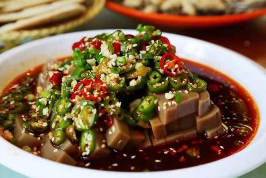 商州擀面皮的面皮选料精良,工艺严谨,调味讲究。以“薄、光、软、筋、香”而闻,皮厚劲道,滑爽弹韧。擀面皮正宗不正宗先看辣子、芝麻油,油泼辣子配之以芝麻粒儿,绵辣醇香,酱汁酸辣开胃。挑起一筷子塞进嘴里酸酸辣辣,凉爽可口,让人回味无穷。“无擀面皮不商洛,一天不吃就不得劲”,这是对商州擀面皮的形象描述,快来商洛吃上一碗吧!