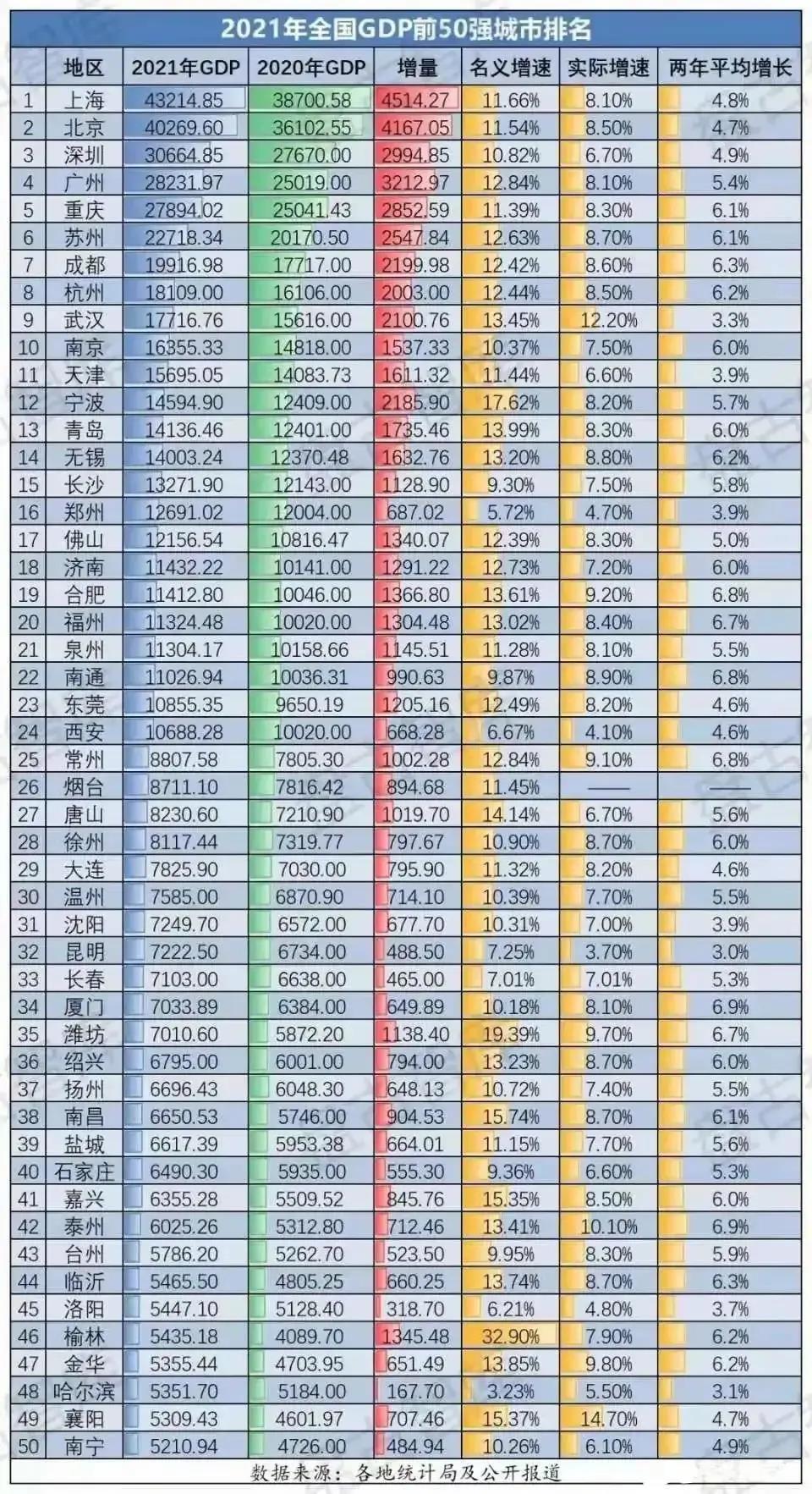 过去的2021年,是潍坊发光发热的一年,在最新公布的2021全国GDP50强城市排名中,潍坊从2020年的39名提到了35名,前进了4个名次,与厦门、沈阳、昆明等一线城市几乎持平,为“十四五”强势开局。