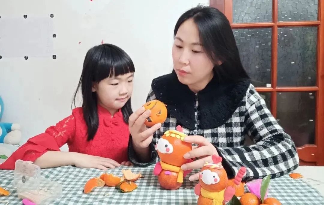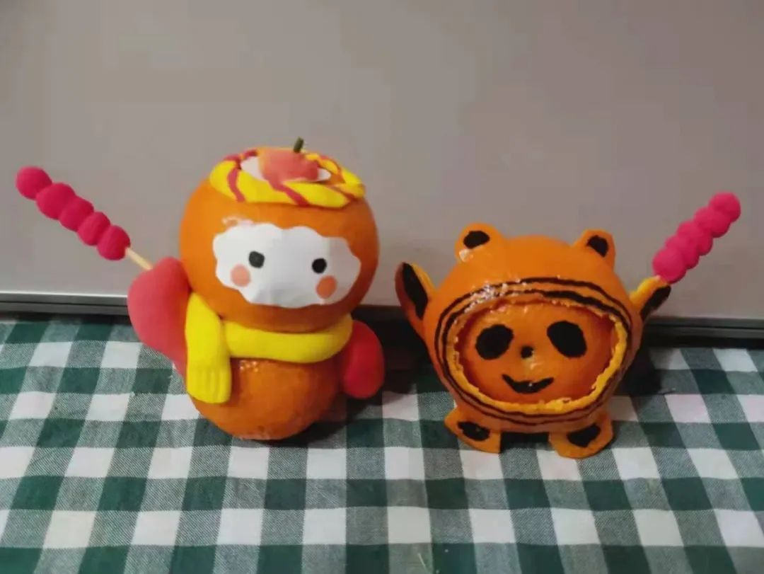 市民丁女士则用橙子和橘子为女儿制作了几个新颖别致的冰墩墩。“我们全家都非常喜欢冬奥吉祥物。”丁女士说,她的女儿不止一次提起想要一个冰墩墩,她就冒出了自己动手做个另类的冰墩墩的想法。于是,有美术基础的丁女士带着孩子,通过手工制作的方式,用橙子、橘子、记号笔、彩泥、剪刀、手工刀、白纸这些再普通不过的东西,耗时两个小时后做出了别出心裁的冰墩墩。自制完后,丁女士还不忘发了个朋友圈,看着这么可爱的“吉祥物”大家都觉得特别有新意。丁女士说,亲手自制“吉祥物”不仅能提高孩子的动手、动脑能力,还能与孩子做一次亲子互动,的确是一个不错的选择。