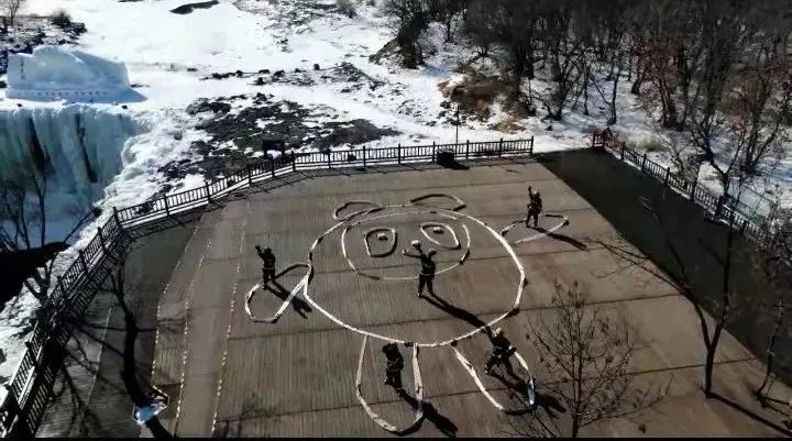 2月12日上午,“蓝朋友”版冰墩墩也亮相镜泊湖吊水楼瀑布看台。牡丹江市消防救援支队镜泊湖消防救援大队的10名消防员用25盘消防水带,在镜泊湖风景区吊水楼瀑布看台摆出“冰墩墩”造型,以此为北京冬奥加油助威。据大队长周杨介绍,他们在北京冬奥会开幕式上看到了镜泊湖的景观,就为北京能举办冬奥会和自己能守护镜泊湖景区的消防安全感到激动和骄傲,便在工作之余产生了就地取材、用消防水带在镜泊湖最著名的吊水楼瀑布旁摆出冰墩墩造型的想法,也希望用这种方式代表牡丹江所有的消防员为我们的冬奥健儿加油!