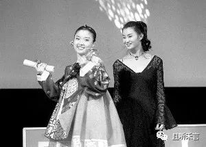 香港影星张曼玉为首届最佳女演员吴贞孩颁奖↓