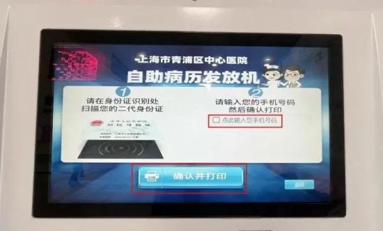 自助机识别到身份证信息后,在界面上输入手机号码并点击确认并打印。