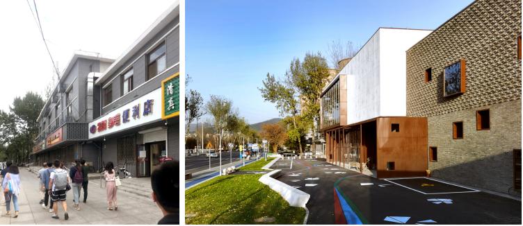 高井路社区成立于2000年,管辖面积1.06平方公里,南临群山,北临高井热电厂,西临双峪路,东临石门路,高井沟横贯东西注入永定河,两侧小区林立,2000余户家庭、4900余位居民生活在此。冬奥社区的更新工作亦是在北京市老旧小区改造的背景中开展,社区原有的公共服务建筑已无法满足居民的活动需求,随着居民对于美好生活的追求以及冬奥会的临近,冬奥社区围绕高井路及高井沟一带两岸两节点(冬奥社区综合文化中心和冬奥社区文化广场)开展了更新改造。(图2)