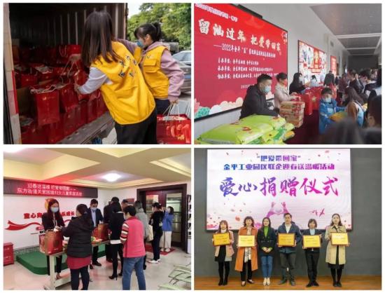 开展“把爱带回家——金平工业园区联企迎春送温暖”、“留汕过年•把爱带回家”新春送祝福等系列主题活动,发动近10家爱心企业捐赠爱心物资价值17万余元,组织金平“益”家志愿服务队深入到留守儿童、困境儿童、困难妇女家中走访慰问,惠及困难妇女儿童家庭200多户。