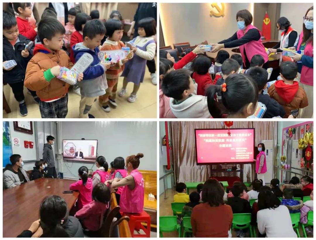 以宣传贯彻“家庭教育促进法”为重点,举办新春家庭教育第一课、“庆新春 迎冬奥”主题亲子诵读、故事分享会等;大力开展“送安全 守护走访”行动,观看安全教育视频,颁发《看图说法》,录制网上迎春晚会在街道公共频道滚动播出。