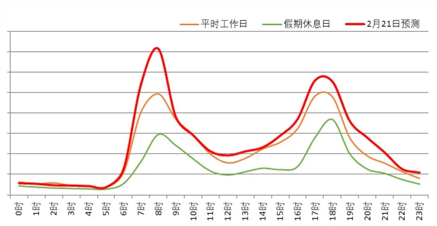 结合往年数据,寒假结束中小学开学当天,路面通行压力将迅速回升到日常水平,早高峰提前至6:30开始。加上适逢周一尾号4和9限行日,较其他尾号限行日交通压力大。
