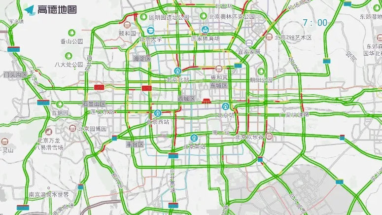 早高峰期间,二、三、四环,东、西、北五环,东、北六环等城区环路,菜户营南路、建外大街、建国路、通惠河北路、西直门北大街、万泉河路、莲石东路、学院路、西直门北大街等联络线进城方向通行压力较大;京藏高速、京承高速、京通快速、京港澳高速、机场高速等将出现进京潮汐车流;肖家河桥、望和桥、西直门桥、菜户营桥、国贸桥、三元桥、四元桥等桥区节点将出现车行缓慢的情况。