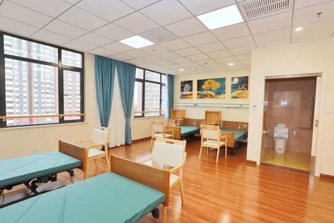 长者照护之家,为老年人提供中短期住养、生活照料、康复护理“一站式”养老服务。内设入院检查区、就餐区、休闲区、药房、护士站、康复区等,合计42张床位。