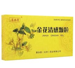 金花清感颗粒由麻杏石甘汤和银翘散化裁而来,包括金银花、麻黄(蜜炙)、石膏、苦杏仁、连翘、黄芩、知母、浙贝母、青蒿、牛蒡子、薄荷、甘草。主要用于治疗流感风热犯肺证,可用于流感的预防和治疗。