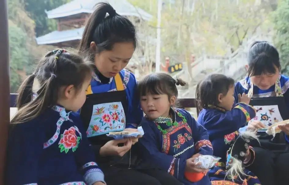 卡蒲平绣也是远近闻名,毛南族妇女自幼就学会挑花刺绣技术,她们的绣品多数是围绕自己的日常生活必需品而制作,无论是背带、童帽、围腰口、枕头,还是被面、床单、鞋帮、围腰带,一件件精美的绣品,是她们智慧的结晶,也是她们对美好生活的向往与追求。