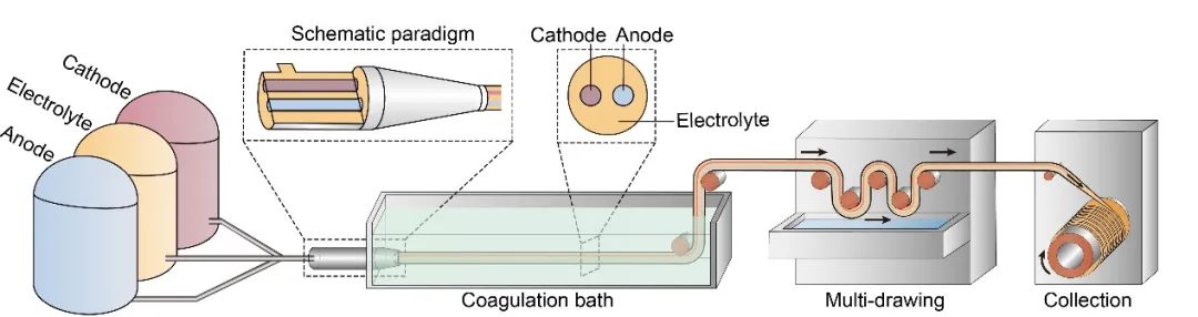 溶液“纺丝”规模化制备纤维电池示意图 | 参考文献[1]