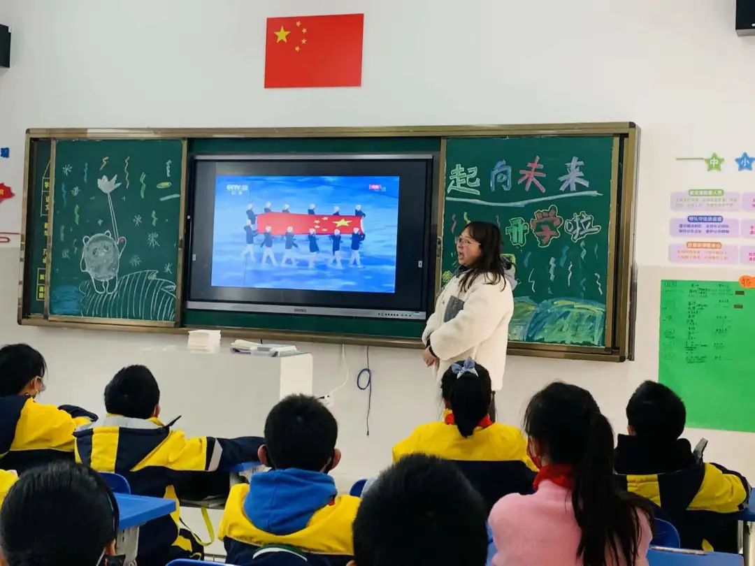 南昌市红谷滩区第三小学以“盛世中华,一起向未来!”为主题开启了新学期的班会课,从冬奥开幕式到自古英雄出少年......老师们带着孩子一起回顾了北京冬奥会开幕仪式传递国旗和二十四节气倒计时的画面,带着孩子们学习了谷爱凌、苏翊鸣等00后小将们的努力人生。最后,老师还为孩子们为精心准备了一整面黑板的红包开学礼,孩子们满心欢喜的拿到了自己的开学礼物。