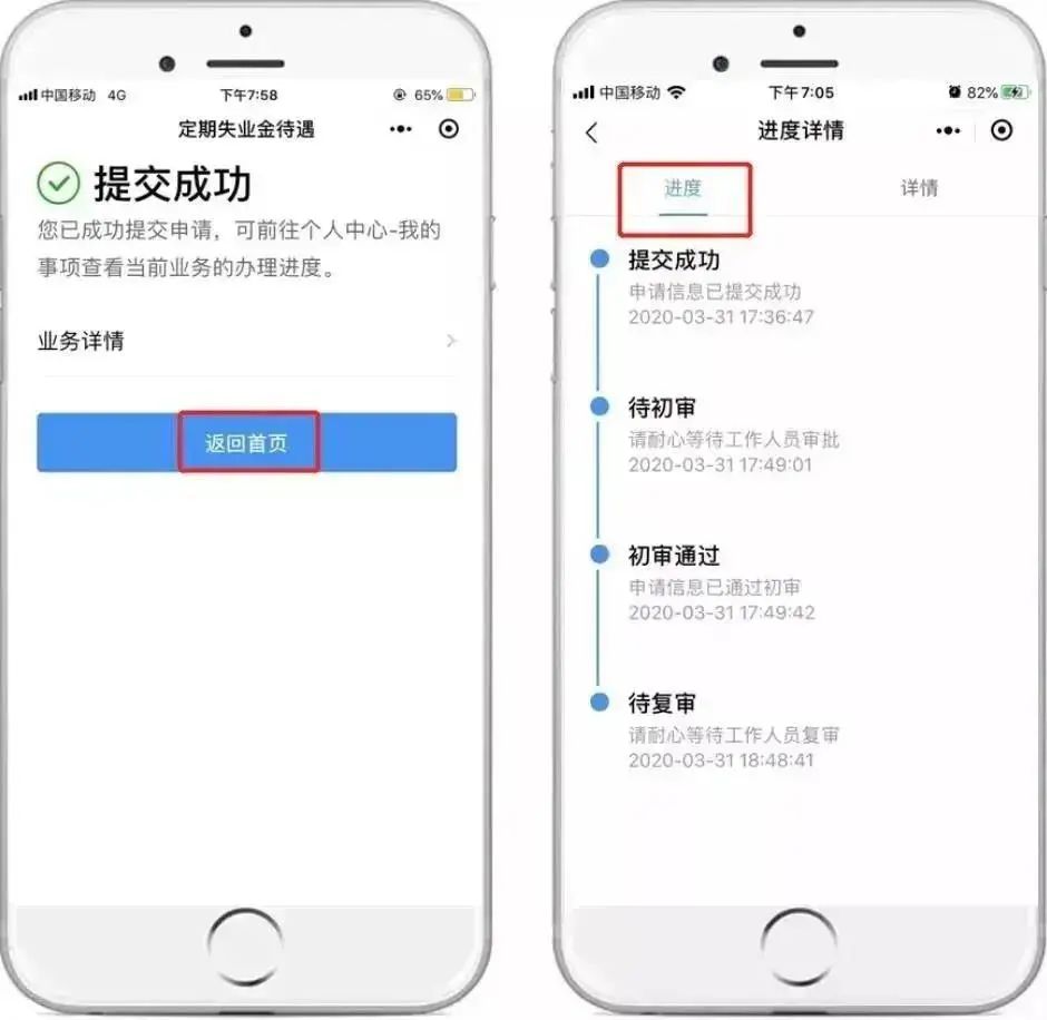 7、提交成功后即完成业务申报。如需查询业务办理情况可点击“业务详情”进入进度详情页面,如需办理其他业务可点击“返回首页”按钮返回首页。