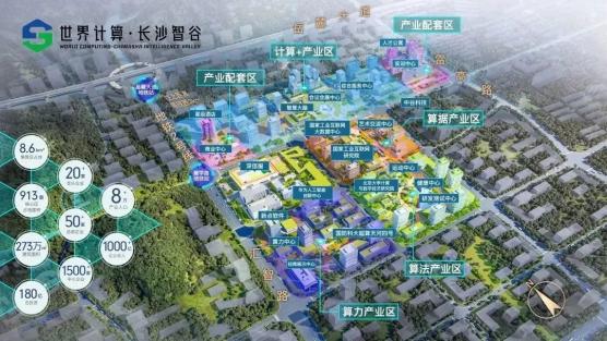 世界计算·长沙智谷项目位于长沙高新区西部,地处长沙“西部门户”位置,紧临岳麓山大学城,北接高铁西城、南临梅溪湖二期,是长沙先进计算产业聚集区的核心区。项目占地913亩,建筑面积约273万平方米,总投资约180亿元。计划到2025年,以地铁2号线为公共交通主干线,通过连接现有生态环境系统,吸纳周边配套资源,打造“产城融合、智慧低碳、生态友好、青年向往、宜居宜业”的产业新城。