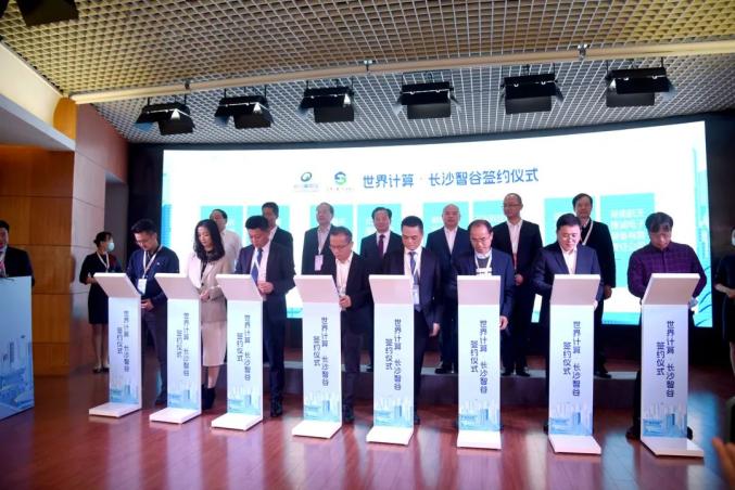 ▲ 2021年10月23日,“长沙·中国1024程序员节”世界计算·长沙智谷项目推介会上,湖南麓谷发展集团与长沙朗源电子科技有限公司、湖南草花互动科技股份公司等8家企业签约。