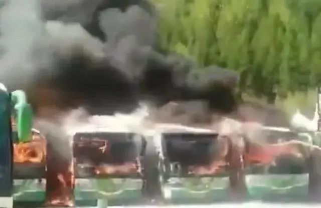 2020年5月,山西五台山风景区停车场内员工在车内抽烟随手扔下的烟头导致6辆公交车着火。
