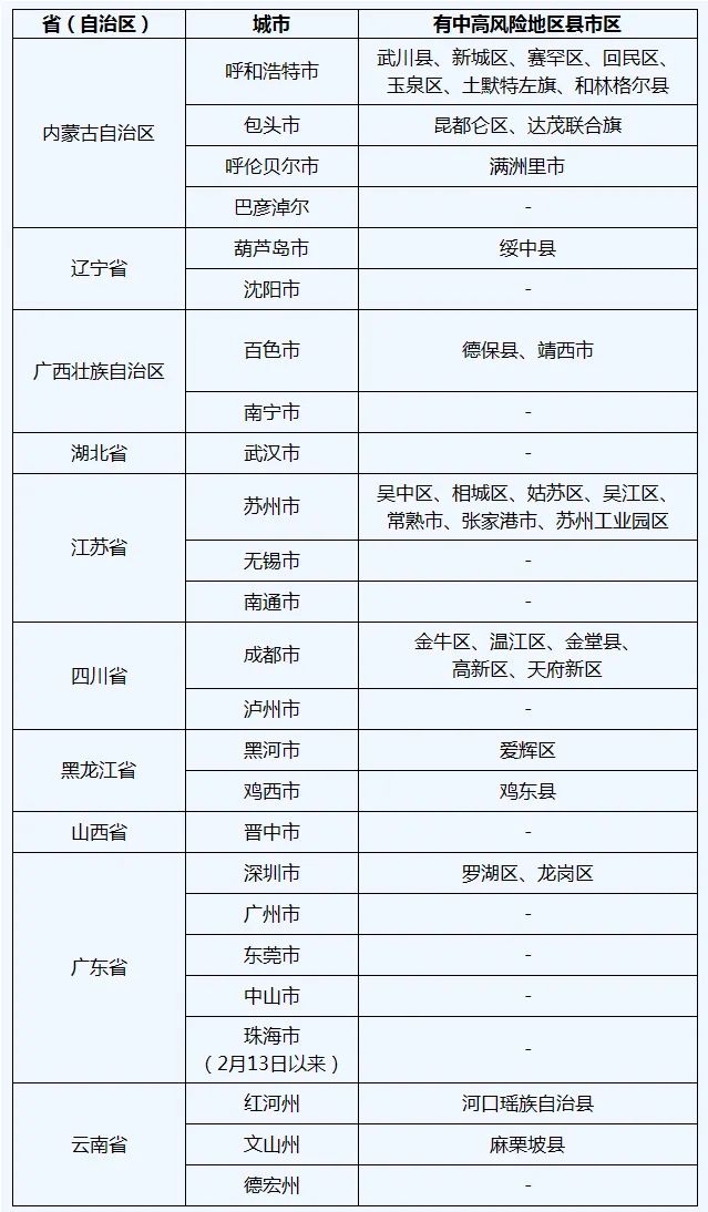 市民朋友们要密切关注各地官方发布的疫情权威信息、国内疫情动态和中高风险地区变化。严格限制前往中、高风险地区及所在县(市、区),非必要不要前往中、高风险地区所在地级市的其他县(市、区)。确需出行的,请在出行前通过国务院客户端小程序查询目的地疫情防控政策,并拨打目的地公布的疫情防控咨询电话进行确认。