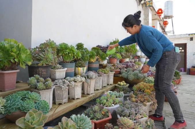 “做完农活回来很累,但看到这些美美的多肉,心里头舒畅多了。”栽种多肉近4年的王梅正在照顾自家门口的多肉。因为喜欢,她经常网购多肉植物进行栽种,如今她已经种植了三四百个品种,还经常把多肉叶片分享给姐妹们进行繁殖栽种。
