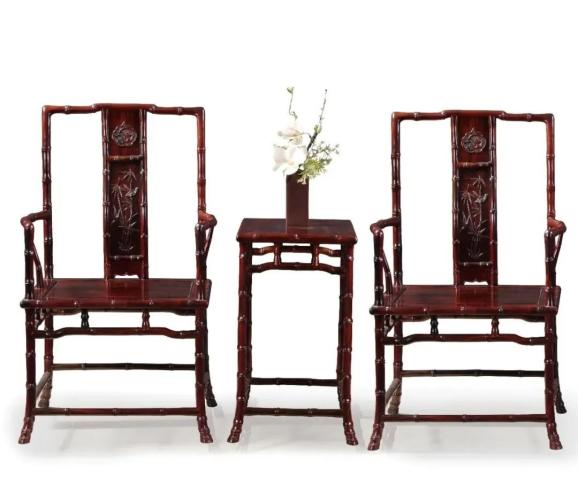 大红酸枝竹节官帽椅三件套(图片/陈俊辉提供)