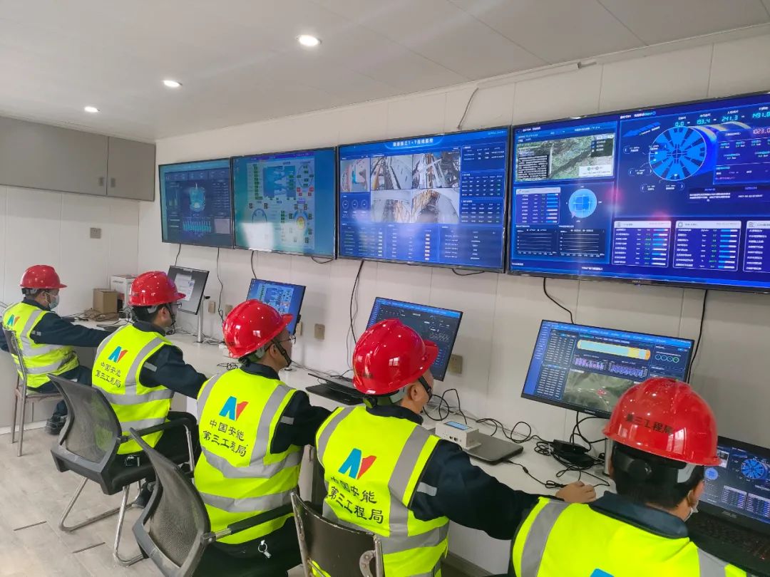 在现场,这台名为“桐心号”的全断面隧道掘进机(简称TBM)宛如一条穿山甲,整机长度63米,重达300吨,开挖直径3.53米,是全国第二台小直径TBM。在TBM信息化方舱内,随着桐城项目部负责人张国庆按下启动键,TBM刀片飞速转动,开启了6.1公里的自流排水洞“穿越”进程,也按下了桐城抽水蓄能电站建设的“快进键”。