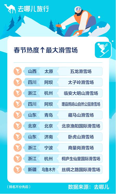 “去哪儿”春节热度前十的滑雪场