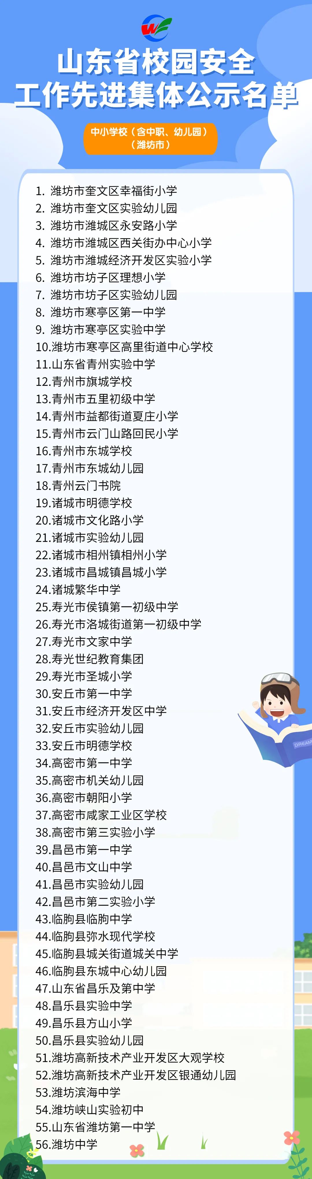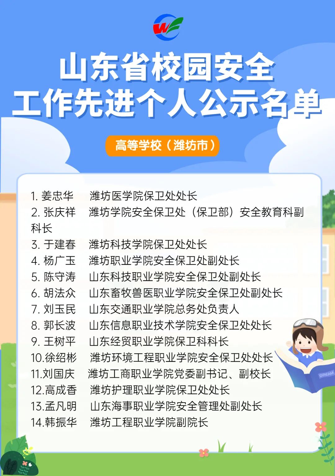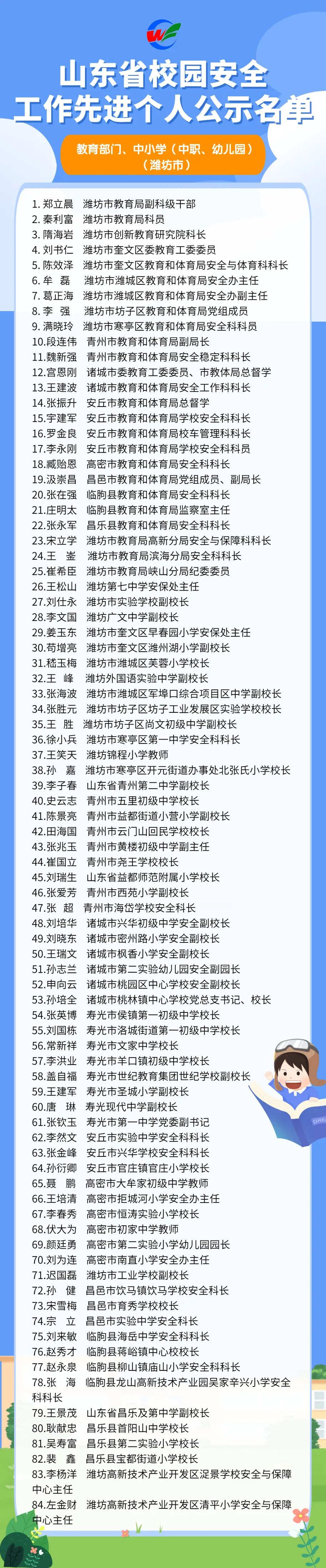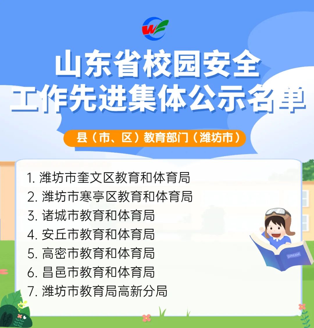 近日,山东省教育厅发布《关于2021年度全省校园安全工作先进集体和先进个人名单的公示》,我市教育系统7个教育行政部门、63所学校拟获“先进集体”称号,98位教师拟获“先进个人”称号。下面一起来看详细名单吧!