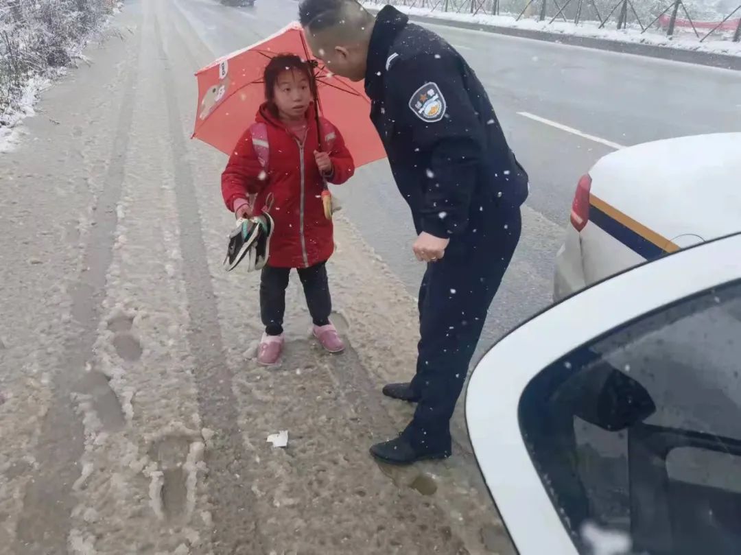 2月22日,长沙落下大雪。下午4点左右,岳麓区交警大队九中队民警黄尧在黄桥大道巡逻时,遇见一位在冰天雪地里独自行走的小女孩。见小女孩鞋子已经湿透,黄尧赶紧下车询问,得知她回家还得步行2公里多路程,便毫不犹豫决定护送女孩回家。