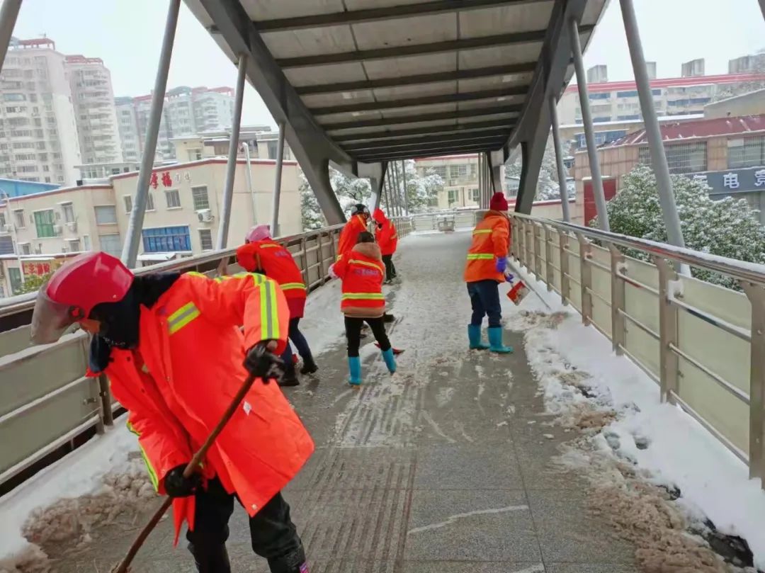 在十字路以及各村(社区)主干道,大家拿着扫把、挥着铁锹,你铲我扫,有条不紊,干劲十足,忙碌的身影构成了一条靓丽的风景线。同时,街道及时发布道路交通安全提示,加大道路交通安全巡查,督促过往车辆采取防滑措施并减速慢行。在大家的共同努力下,全街交通主干道、通村道路完成积雪清理工作,确保了群众出行安全。