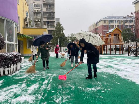 2月22日,一场突如其来的大雪把幼儿园装点得“分外妖娆”,但厚厚的积雪也给师幼出行带来了安全隐患。为了保障群众、幼儿出行安全, 22日下午,观沙岭街道施家港社区组织社区党员、五幼老师等志愿者组成了铲雪小分队,大家冒着严寒、顶着雪花,对幼儿园院内及周边主要道路进行铲雪。随着上下飞舞的铁锹和扫帚的沙沙声,志愿者们快速清理了路面积雪,为居民群众、幼儿铲出了一条“安全路。”