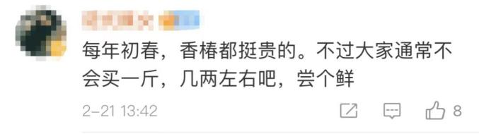 虽然头茬香椿口感鲜嫩,但价格偏高,从时令来讲,3月才是吃香椿的最佳时节,届时价格也大幅走低。