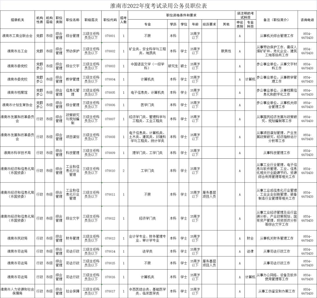 原标题:《淮南市2022年度考试录用公务员职位表来了!》