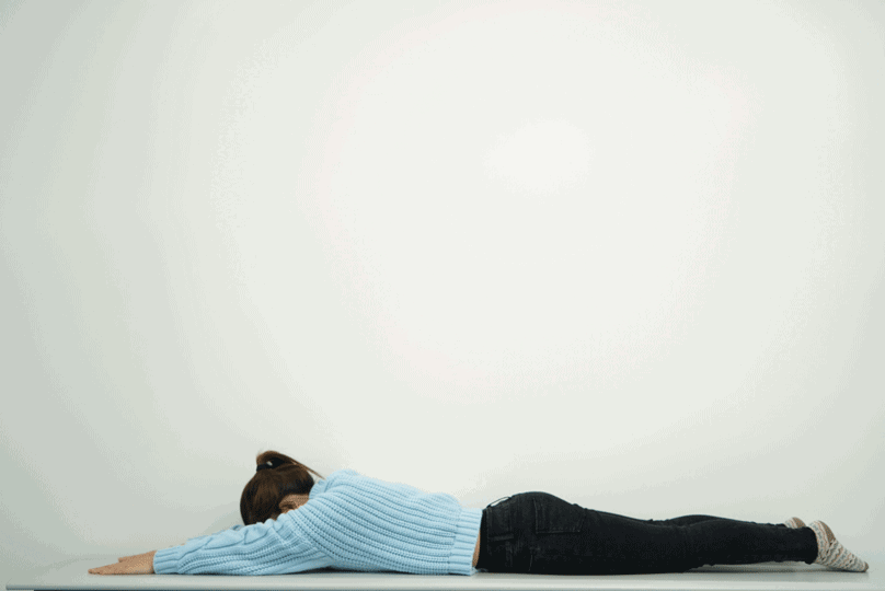 小燕飞:俯卧,双手双脚向上伸展抬高,保持几秒后放下。