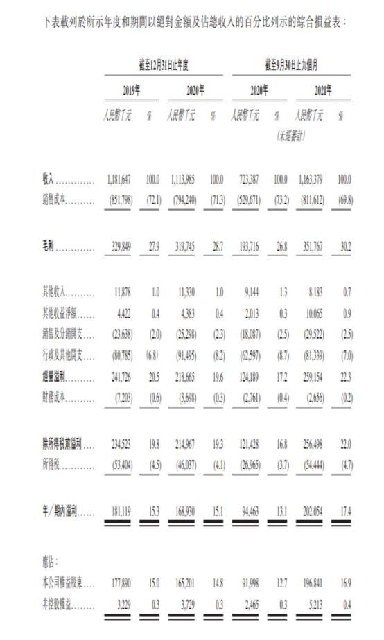 此外,公司的毛利率于往绩记录期持续增长,由2019年的27.9%增加至2020年的28.7%,并由截至2020年9月30日止九个月的 26.8%增加至2021年同期的30.2%。