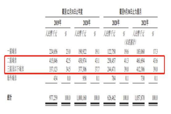 从区域划分来看,杨国福的市场重点主要在二三线城市。招股书显示,近年来,公司在二线、三线及以下城市销售货品业务收入占总比的比例逐步提高,2019年、2020年以及截至2021年9月30日止九个月,分别为77.0%、80.8%和82.6%。