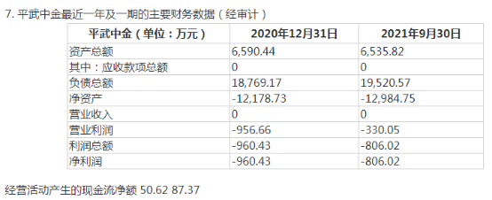 值得注意的是,查阅平武中金近一年的主要财务数据发现平武中金近一年业绩不太乐观,2020年及2021年前三季度平武中金净利润分别为-960.43万元和-806.02万元;同期负债总额分别为1.88亿元和1.95亿元。在中润资源将平武中金大部分股权转让后,平武中金将不在中润资源合并报表范围内。